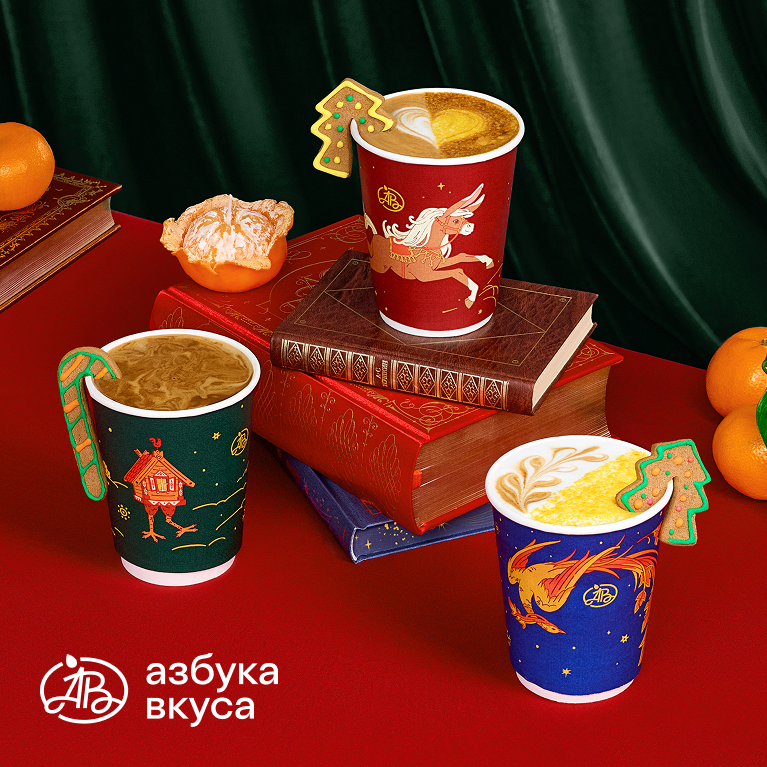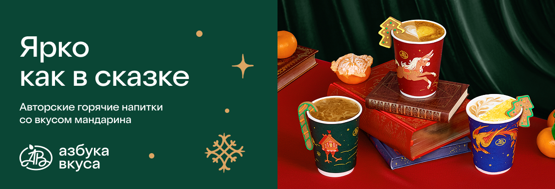 Меню новогодних напитков в «Азбуке вкуса» с ярким ароматом мандарина — главным символом зимних праздников. |