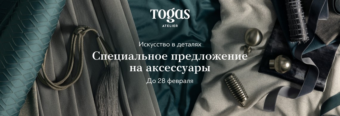 Весь февраль наслаждайтесь специальным предложением на аксессуары при оформлении штор на заказ. |